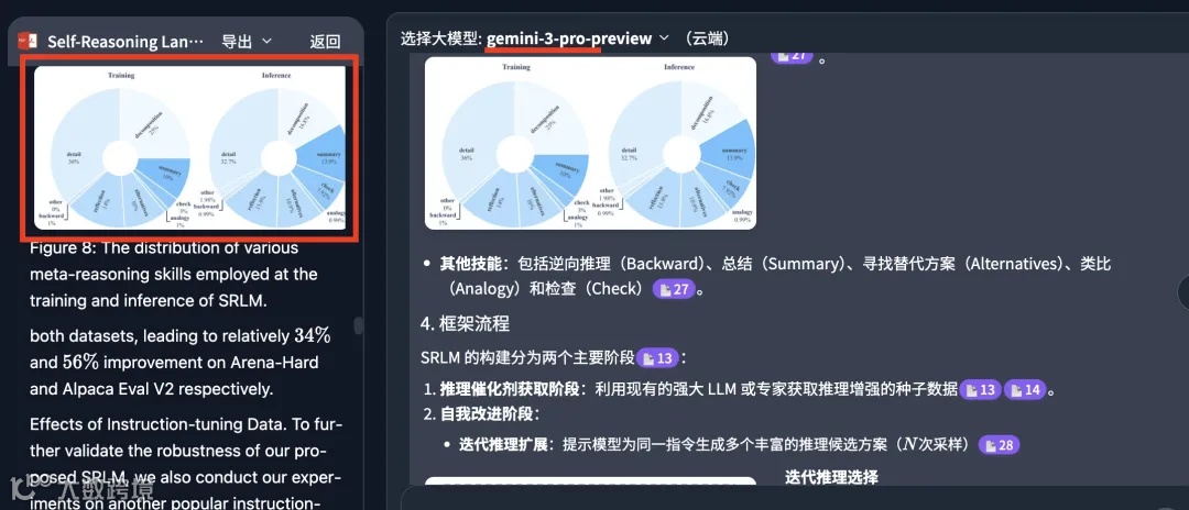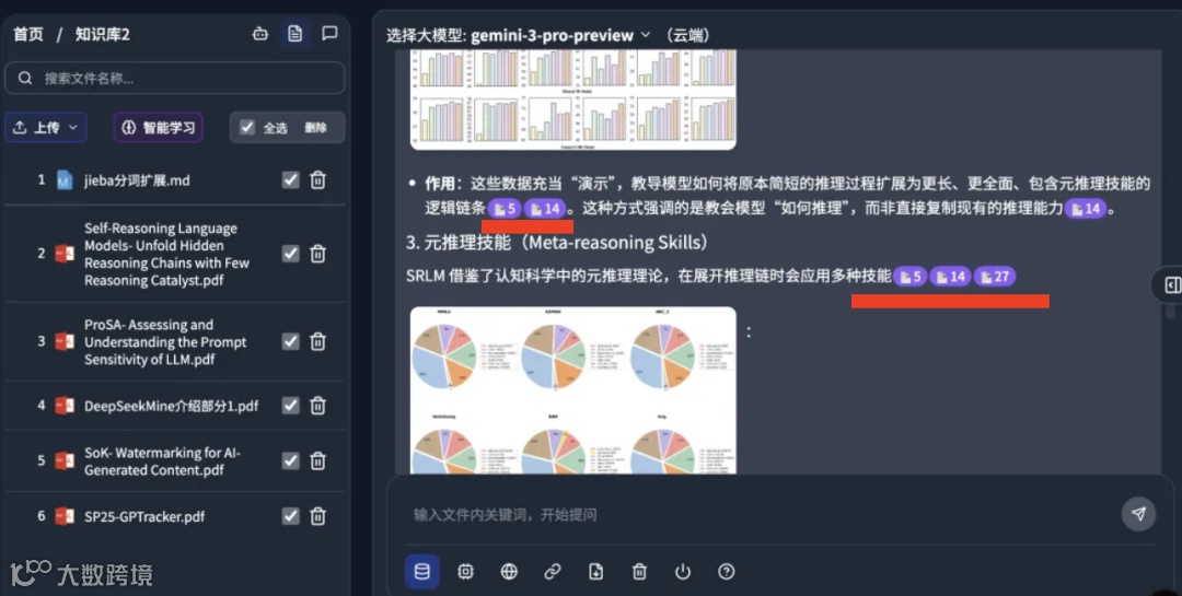 其核心优势在于:提问时答案均基于用户上传的真实文件生成,拒绝幻觉输出;并支持图文混合检索与外文文献深度分析,所有回答均附带明确引用来源,点击即可跳转至原文对应位置。