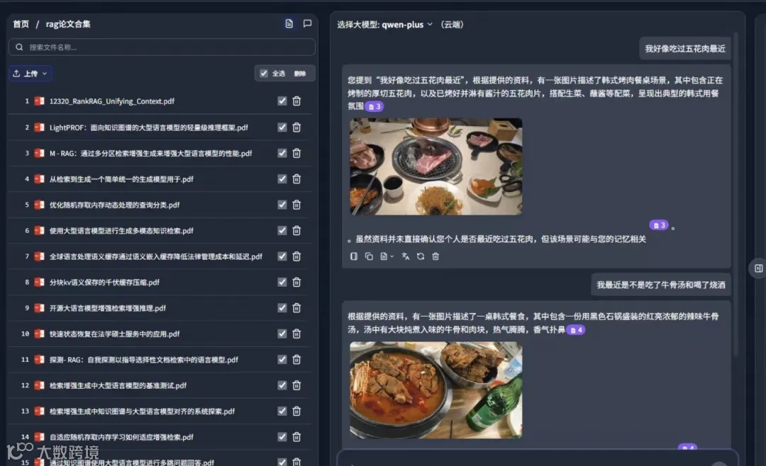 支持结合OCR与多模态理解,对已学习的图片类文件进行语义检索,实现图文联合问答。
