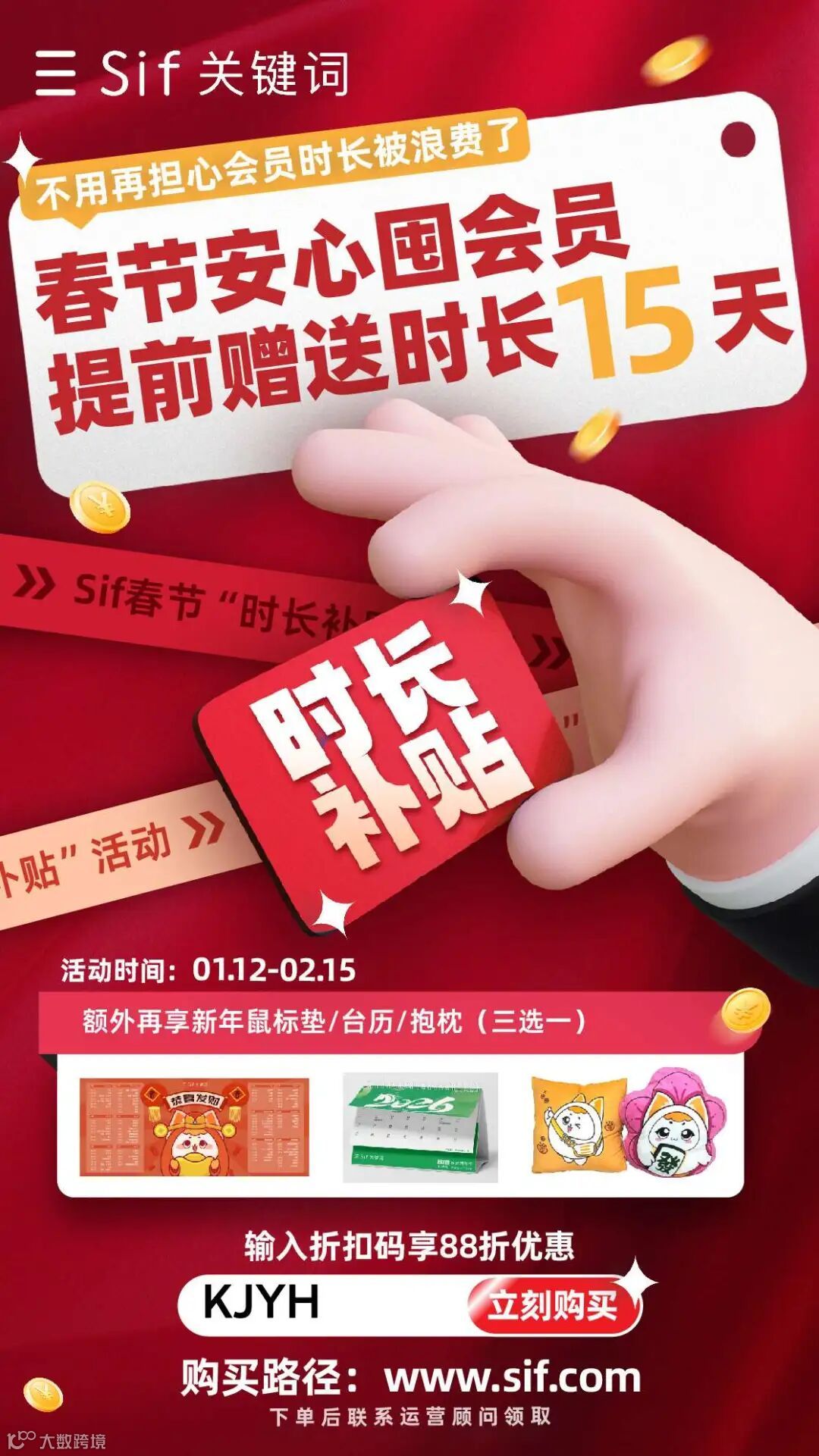 即日起至2026年2月15日,开通即赠15天使用时长及新春专属好礼,开通后联系官方客服登记领取。