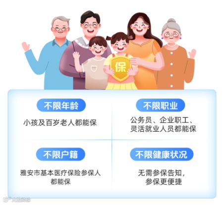 作为雅安市政府指导的惠民工程,“雅安惠雅保”六大亮点为雅安市基本医保参保人员罹患重病大病时,在现有医保之外,再增加一份大额自费医疗费用的补充保障。