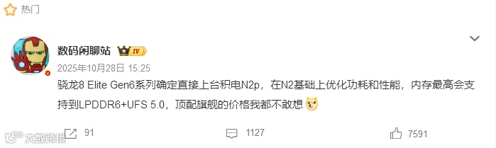另一方面,安卓厂商面对的情况更加糟糕,由于苹果包了台积电的大部分产能,导致晚来的厂商只能找三星代工的骁龙8EliteGen6,预计成本在300美元左右。