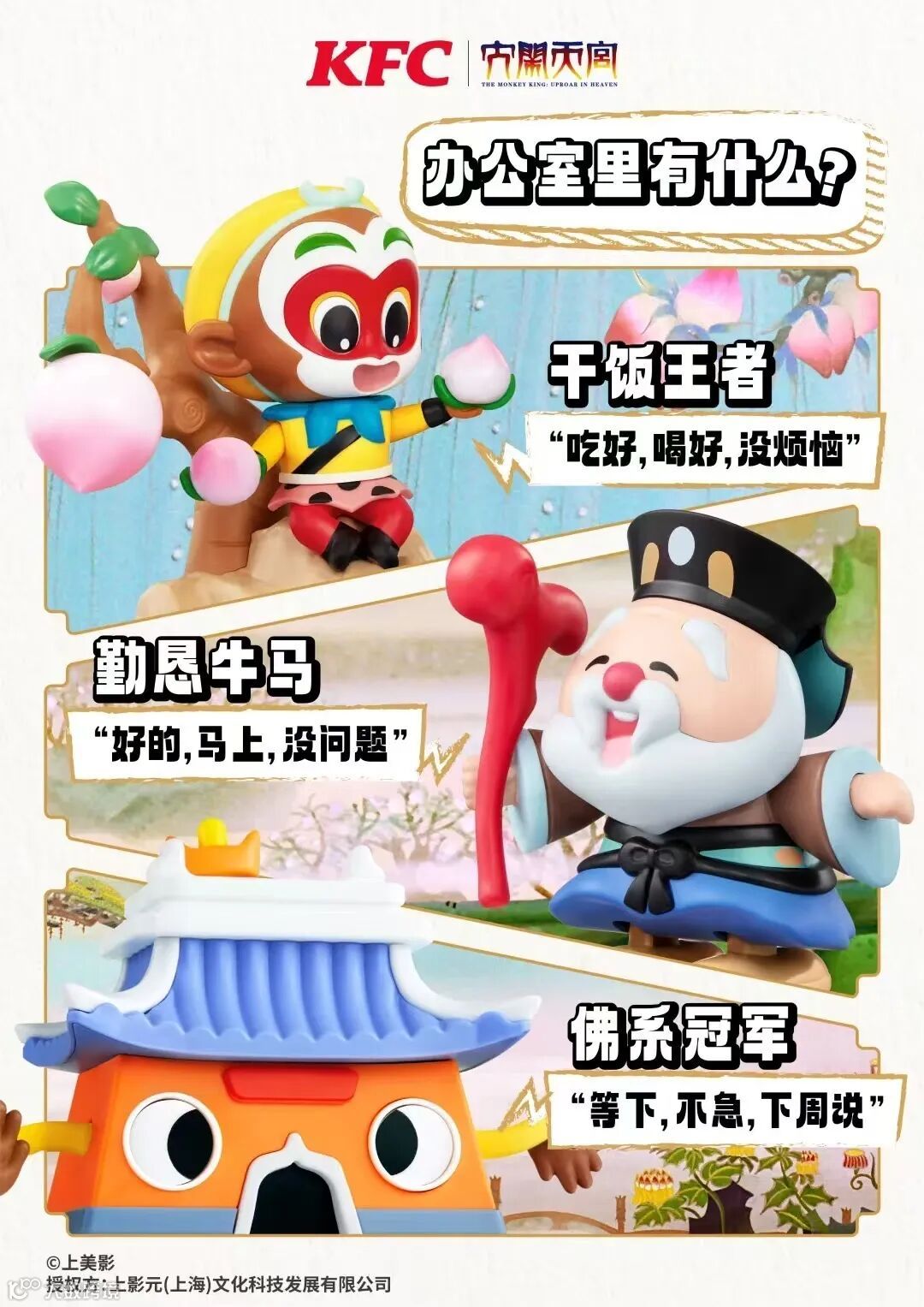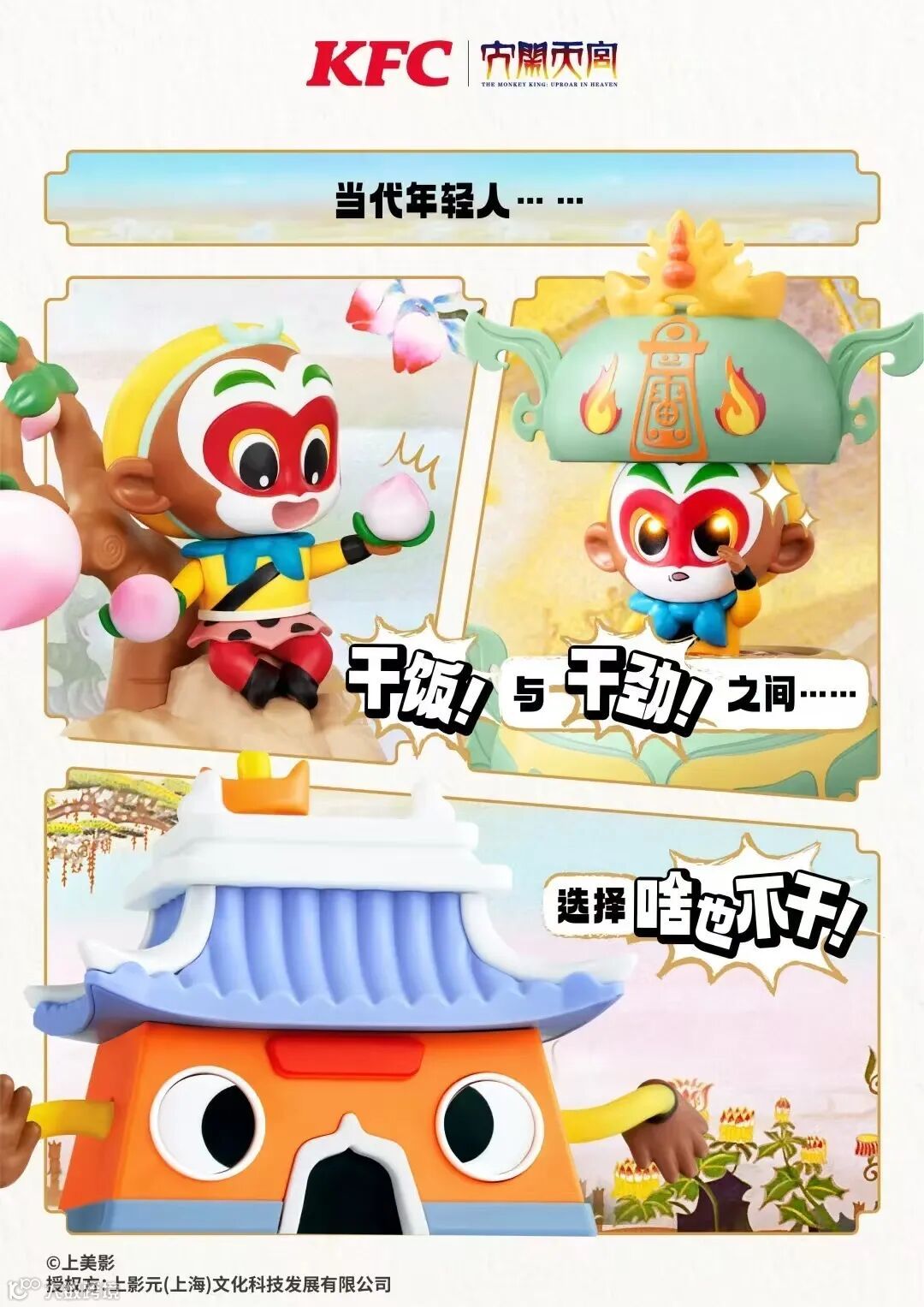 9月6日起,肯德基携手经典动画《大闹天宫》推出联名活动,将孙悟空形象与炸鸡产品结合,打造“神仙滋味”主题体验,强化品牌趣味性与文化属性。