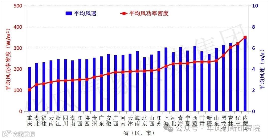 图12 2025年100米高度平均风速与平均风功率密度柱状曲线图