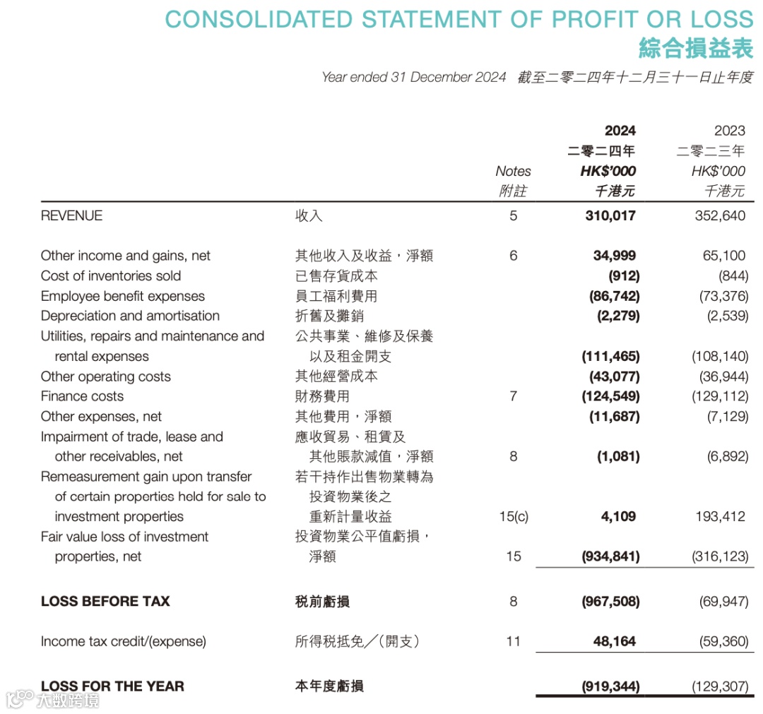 受其在美国、英国及中国内地持有的商业地产项目估值下调,公司投资物业公允价值发生变动,使得国锐生活2024年录得净亏损达9.348亿港元,综合亏损达到2023年的7倍即9.193亿港元。