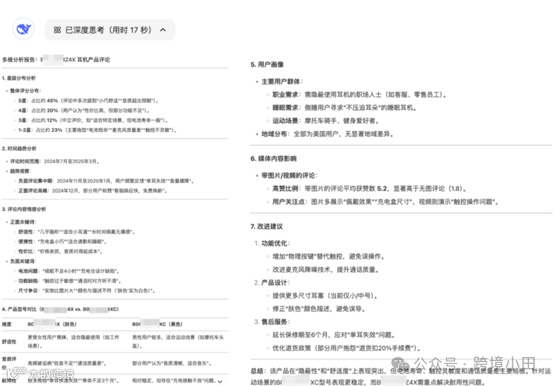 DeepSeek将生成清晰的优缺点列表及改进建议,用于制定产品优化策略或市场推广计划。