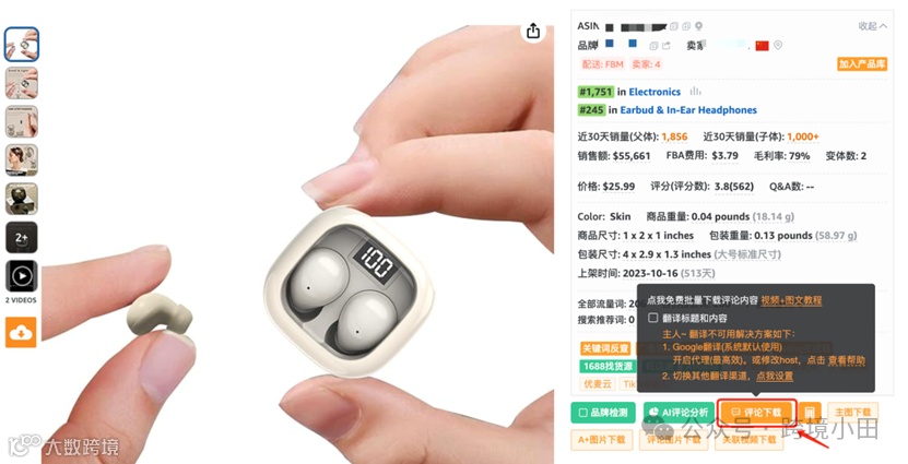第一步:安装卖家精灵Keepa插件,在亚马逊前台产品页面下载评论。