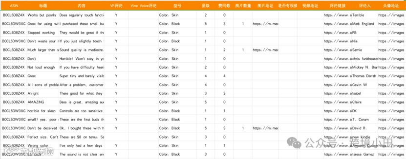 - 评论类型统计:包括图片评论、视频评论、VP评论(真实购买者撰写)、Vine评论(有资格的亚马逊买家撰写)。