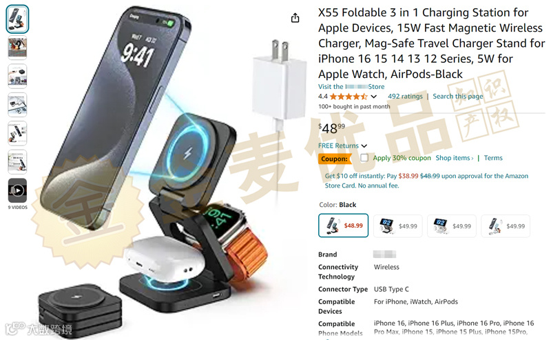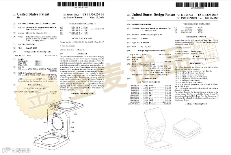 2024年8月5日,Rubio & Associates, P.A.律所代理SHANGXING TECHNOLOG (SHENZHEN) CO., LTD在案件号:2024-cv-22971。该案件共起诉了81家店铺,主要为亚马逊、Ebay和Temu平台。2024年9月17日,SHANGXING TECHNOLOG (SHENZHEN) CO., LTD仅向部分被告发出自愿撤诉通知。该公司旗下有4个专利信息,有外观专利也有发明专利,例如US11936224B1,USD1028886S,USD1030658S等等,涉及一种可折叠无线充电支架,包括至少两个通过导线电连接的无线充电模块。铰接组件包括可转动的铰接套和铰接轴;两个相邻的无线充电模块中的一个的周缘上开设有安装槽,铰接套的周侧壁与另一个无线充电模块固定连接。铰接套开设有第一开口、第二开口和导线通过孔;铰接轴具有转动部和突出于转动部外表面的安装凸耳;转动部通过第二开口可转动地嵌入铰接套中;安装凸耳露出于第二开口并与无线充电模块固定连接;导线穿过第一开口和导线通过孔。以上是其中发明专利的描述,卖家注意比对,即使产品不是一模一样,设计理念相同也会有侵权风险!