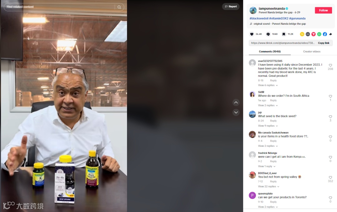 而2022年7月一个普通的夜晚,Guru Nanda创始人的手机突然响得不停。原因是一位年长女性在TikTok发布了一条关于Guru Nanda产品的短视频,其观看量已突破100w+,累计互动评论更是达3000+。