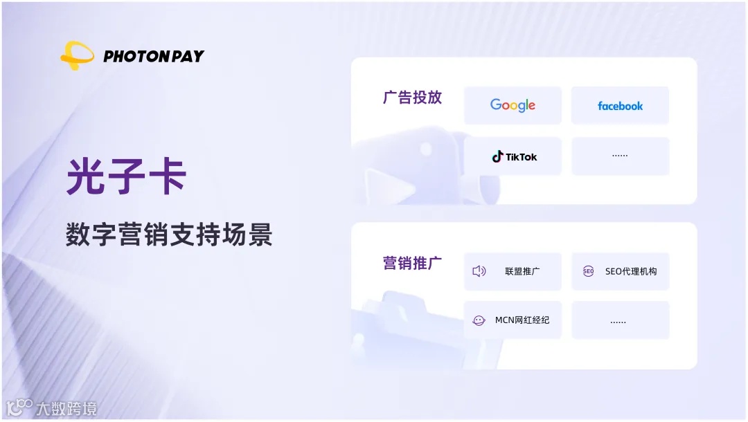 PhotonPay光子易发行的虚拟卡,覆盖广告投放、平台店租、货品采购、仓储物流等多个付款场景,依托多币种、交易透明、高效对账等个性化服务帮助许多出海企业全面提升广告投放效率。