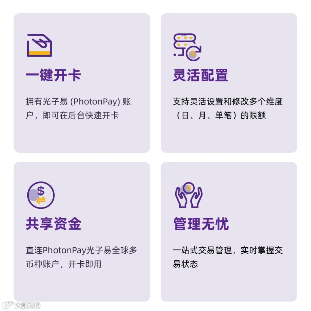市面上虚拟卡种类繁多,而在跨境支付领域,合规与高效是关键。PhotonPay光子易持有香港 MSO、美国 MSB 波兰SPI等多个地区的支付牌照、许可,与全球知名银行及金融机构建立紧密合作关系,为企业提供强大且可靠的资金交易支持,确保资金流转的高效性与安全性。