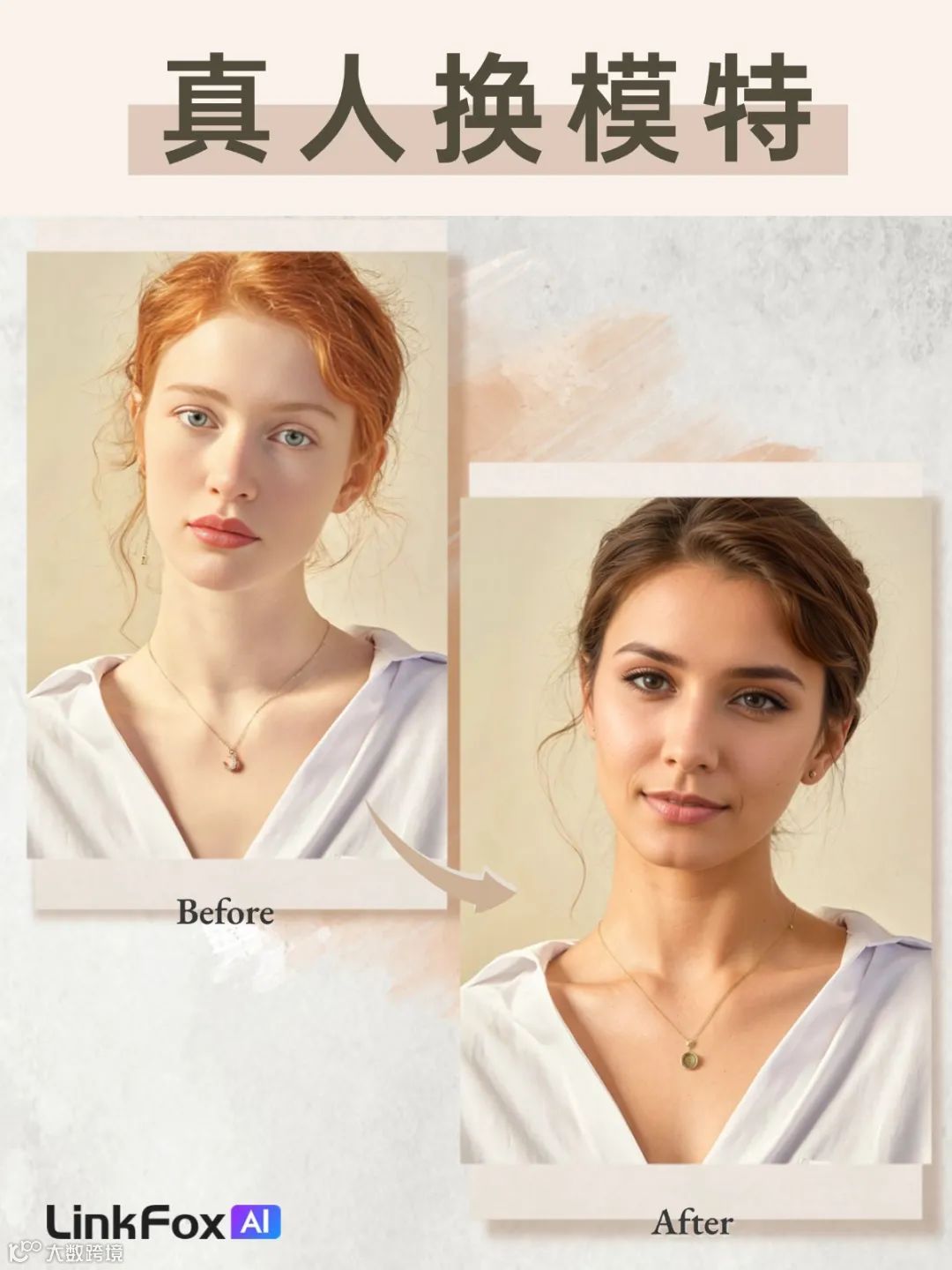 一键将鞋子、箱包、眼镜、帽子、首饰等穿在模特身上,节省多sku的布景拍摄成本。直接上传产品拍摄图,免抠图,一步穿到位。