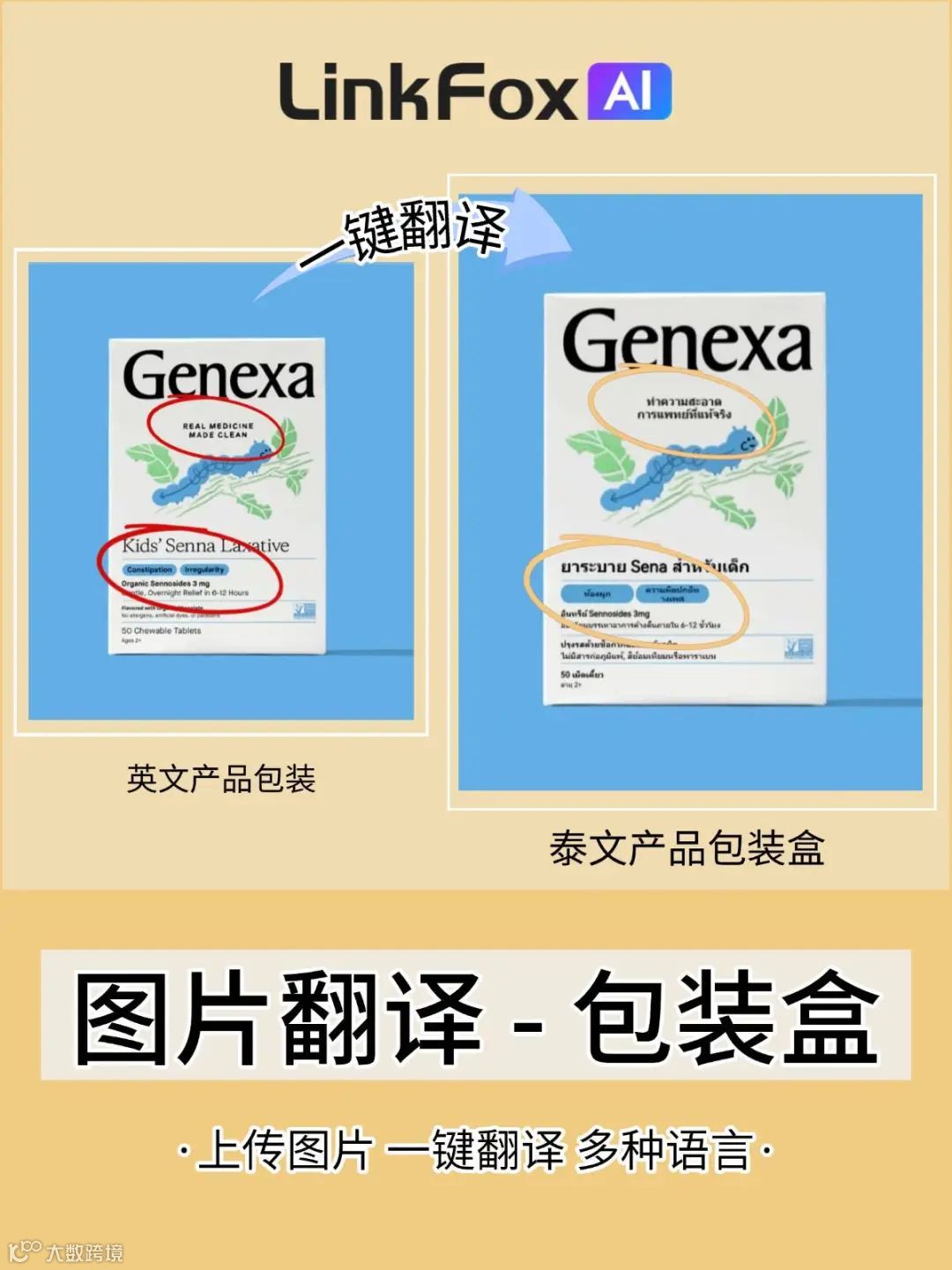 上传图片,AI自动识别+精准翻译。覆盖商品图、外包装、海报、说明书等场景, 保留原图排版样式,字体自动适配。