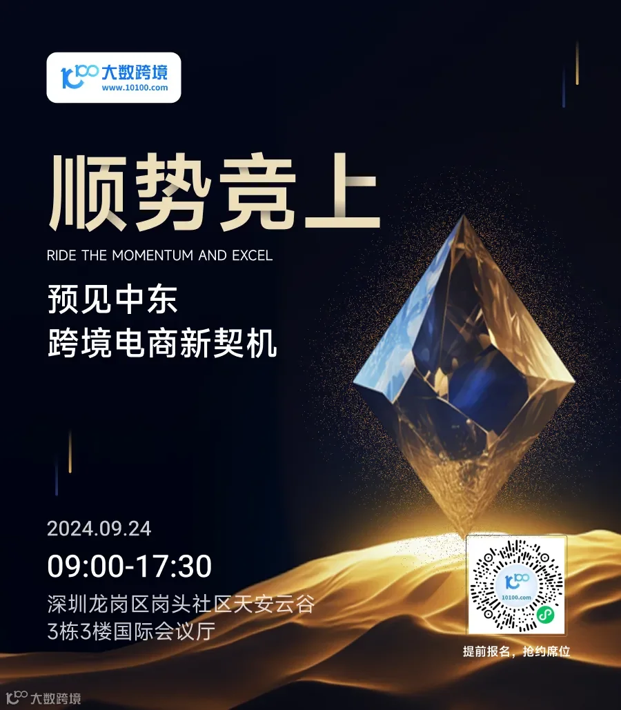 把握出海机遇,抓住跨境风口。9月24日,大数跨境将在深圳举办【顺势竞上·遇见中东 跨境电商新契机】活动,特邀亚马逊全球开店、Noon、Hepsiglobal、LoveAd等主流平台及跨境行业大咖,一同打破信息壁垒,把握中东市场脉络,强化卖家间的互动学习,共同探讨跨境电商新契机、品牌出海新战略!立即报名