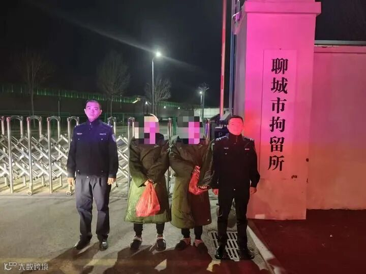 山东聊城警方于2025年11月26日晚抓获正在发放虚假材料的朱某某、王某。