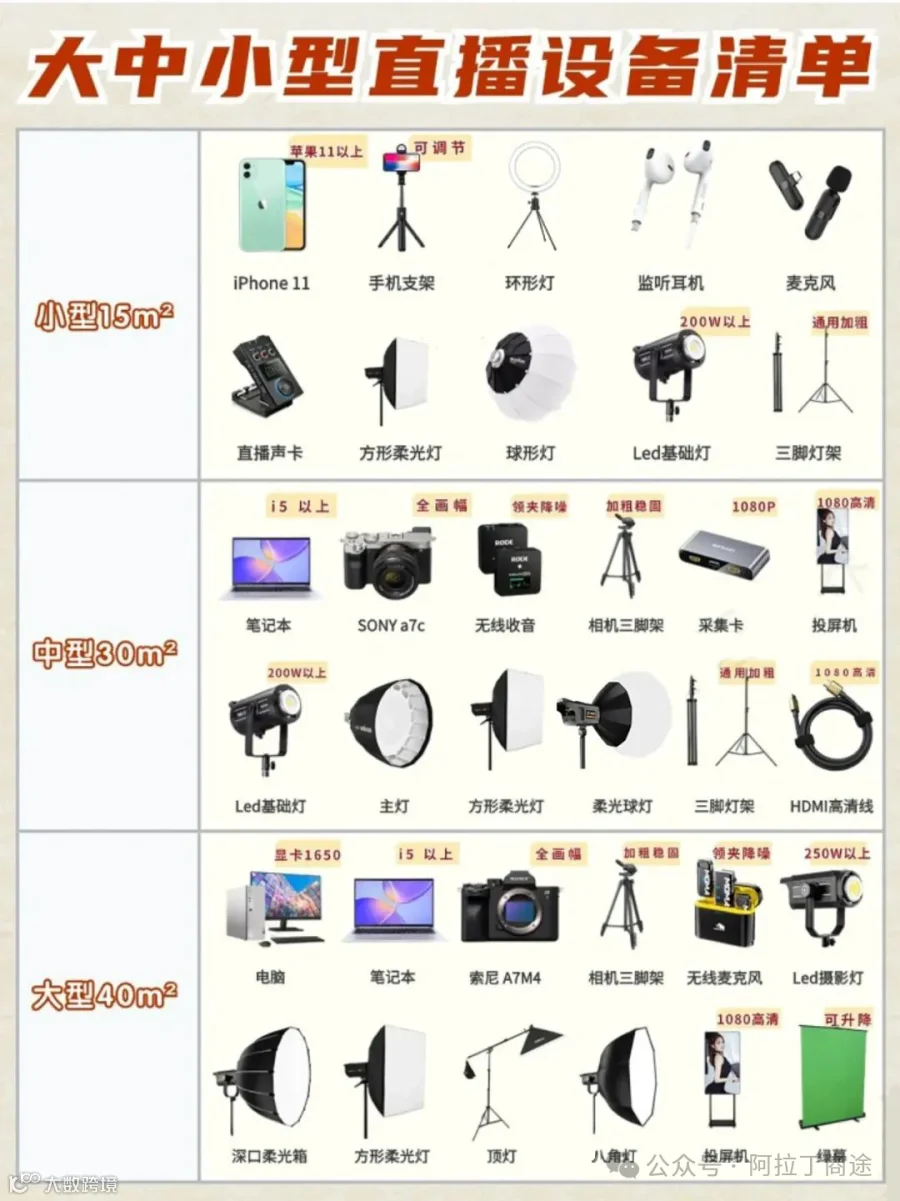 优质的直播效果离不开专业的设备支持,以下为直播间必备器材清单: