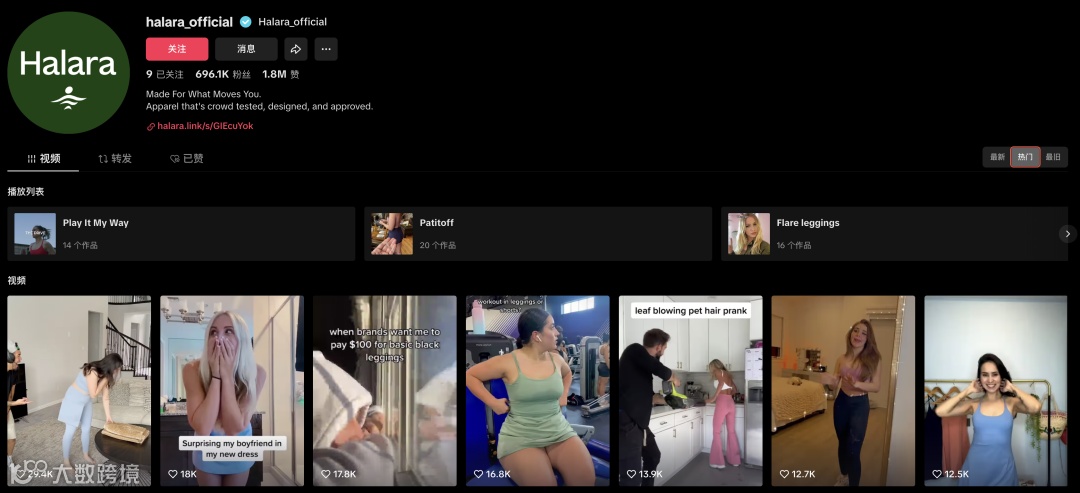 而 Halara 的打法就很中国了,这个成立于 2020 年的品牌,直接将国内的“种草”公式搬上 TikTok:KOC 分享+用户生成内容(UGC)+浪潮式广告投放。