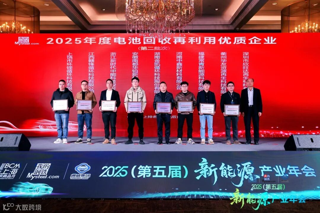2025年11月18日至19日,由上海钢联主办的2025(第五届)Mysteel锂电产业年会在成都成功举办。福建常青新能源科技有限公司凭借退役电池高效回收实力、完善产业布局及显著绿色成效,继2024年后再度获评“电池回收再利用优秀企业”。这充分彰显了公司在电池回收领域持续投入资源、推动行业发展的积极态度与坚定承诺,体现了企业对可持续发展理念的深度践行和对产业链绿色循环的高度重视。