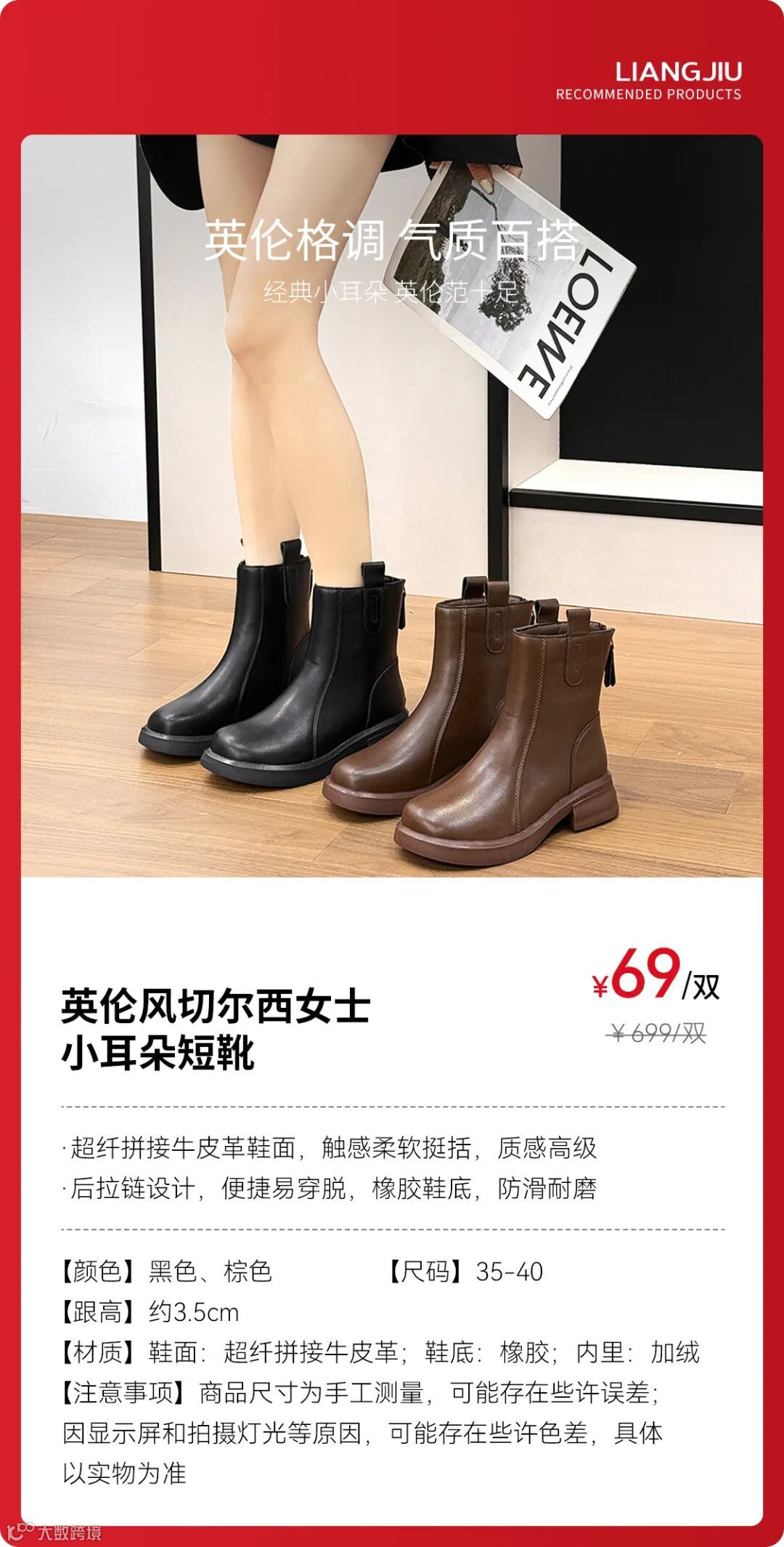 ·约3.5CM的跟高设计,经典小耳朵,英伦范十足