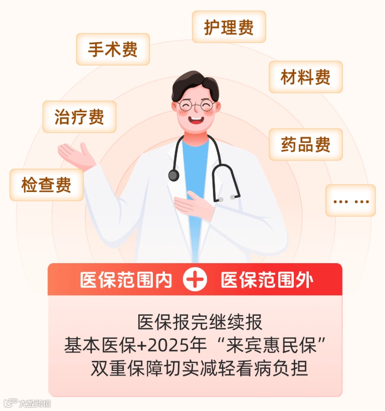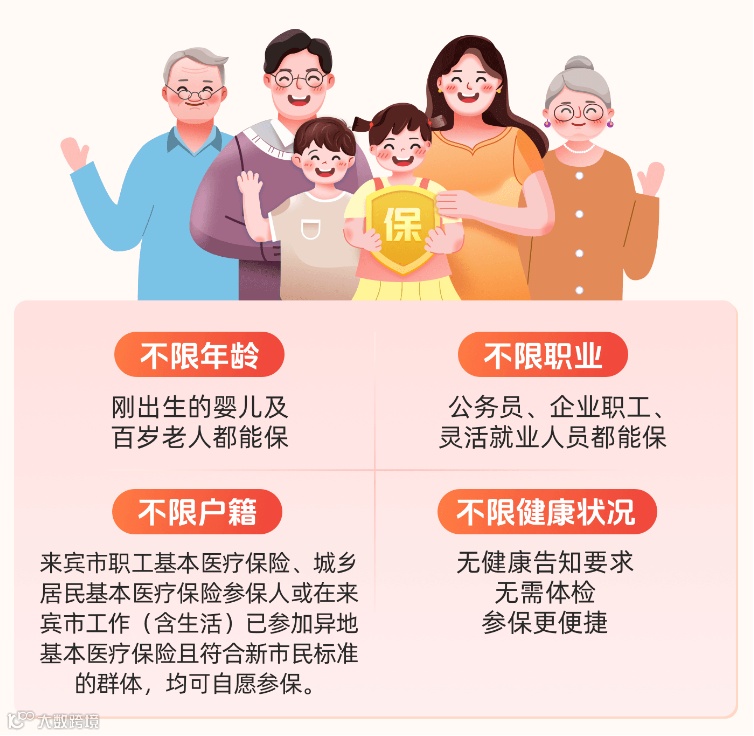 2025年“来宾惠民保”秉持服务民生的原则,延续原有的“低门槛、低保费、高保额”的普惠性质,在往年基础上精心打磨,为人民群众提供更全面更贴心的保障,为更多家庭的美好生活保驾护航。