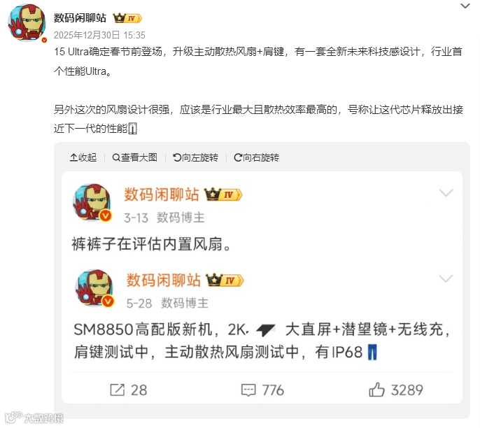 趁热打铁,iQOO在年前还会有一款主打性能Ultra的iQOO15 Ultra,博主爆料将在春节前发布。