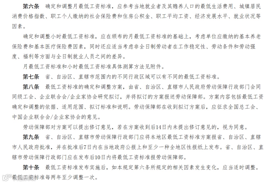 确定和调整月最低工资标准,主要参考本地区就业者及其赡养人口的最低生活费用、城镇居民消费价格指数、职工个人缴纳的社会保险费和住房公积金、职工平均工资、经济发展水平、就业状况等因素。