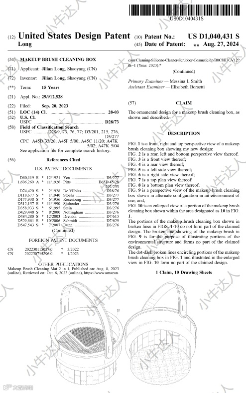 经查询,这款产品于2023年9月20日在美国进行外观专利申请的提交,于2024年8月27日获得了公告。