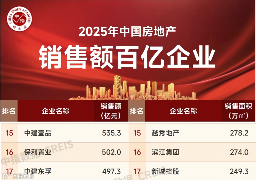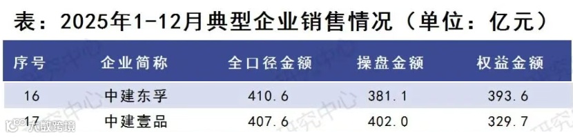克而瑞数据显示,2025年,销售额进入千亿阵营的房企只有10家。而中建壹品的全口径销售额为407.6亿元,不到千亿目标的一半。
