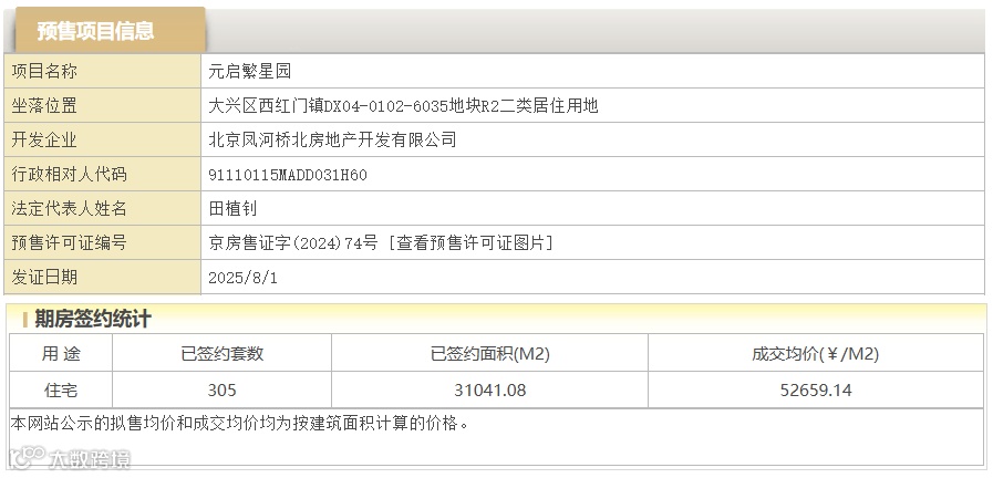 2025年11月,位于北京海淀区的「中建壹品·海宸元境」(备案名:海辰里)的396套房源获得预售证,目前已签约68套,签约率17%。