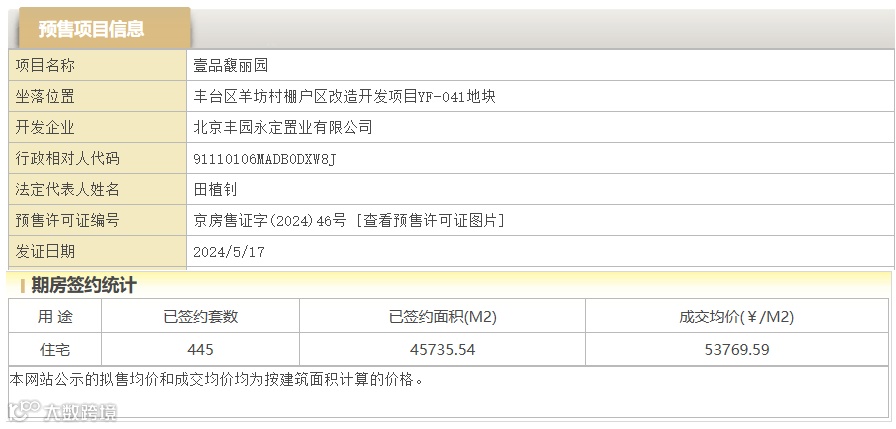 此外,2024年5月,北京市丰台区的「中建壹品·花香壹号」(备案名:壹品馥丽园)542套房源取得预售证。在存量房扎堆的丰台区,项目降价已成主流。据悉,此项目指导价为7.2万元/㎡,但成交均价只有5.38万元/㎡。在如此明显的价格差距下,目前仍有近百套房源没有完成签约销售。