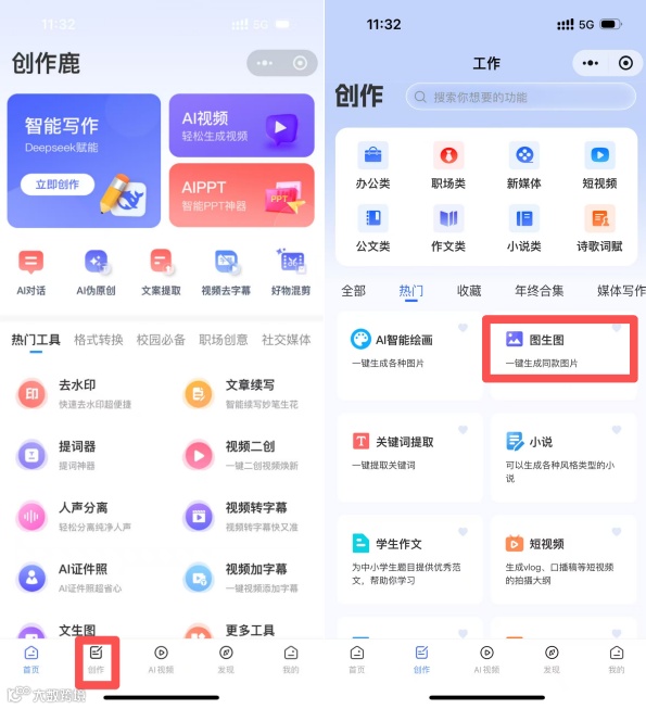 直接在绿泡泡里搜索创作鹿小程序,点击进入即可使用啦!