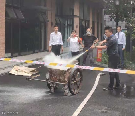 工作人员讲解了消防栓的正确使用方法后,大家纷纷拿起消防栓按照正确步骤将火扑灭。