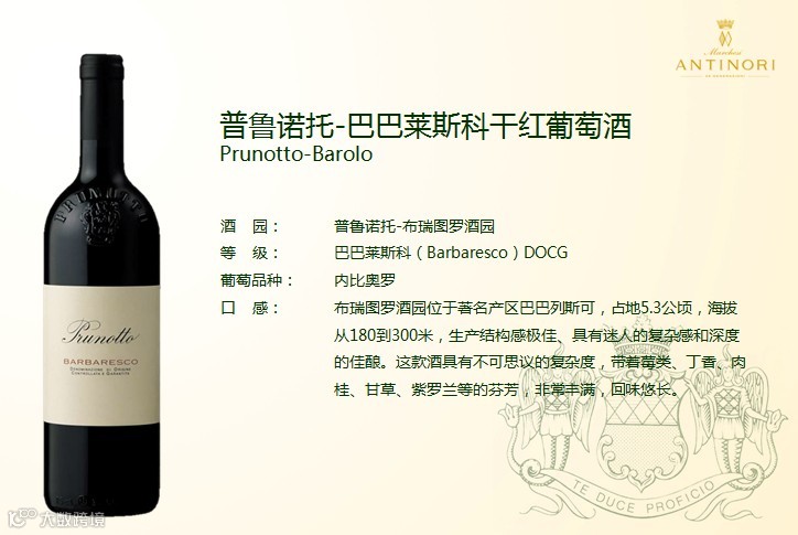 意大利最负盛名的葡萄酒产区皮埃蒙特(Piemonte)出产的内比奥罗(Nebbiolo)酿造的葡萄酒绝对是百搭的选择。内比奥罗葡萄酒有两种主要的风格,一种是巴罗洛(Barolo),普通的巴罗洛酒体轻盈、清爽易饮;另一种是巴巴莱斯科(Barbaresco),比起巴罗洛,巴巴莱斯科要更为简单,单宁更为柔和。