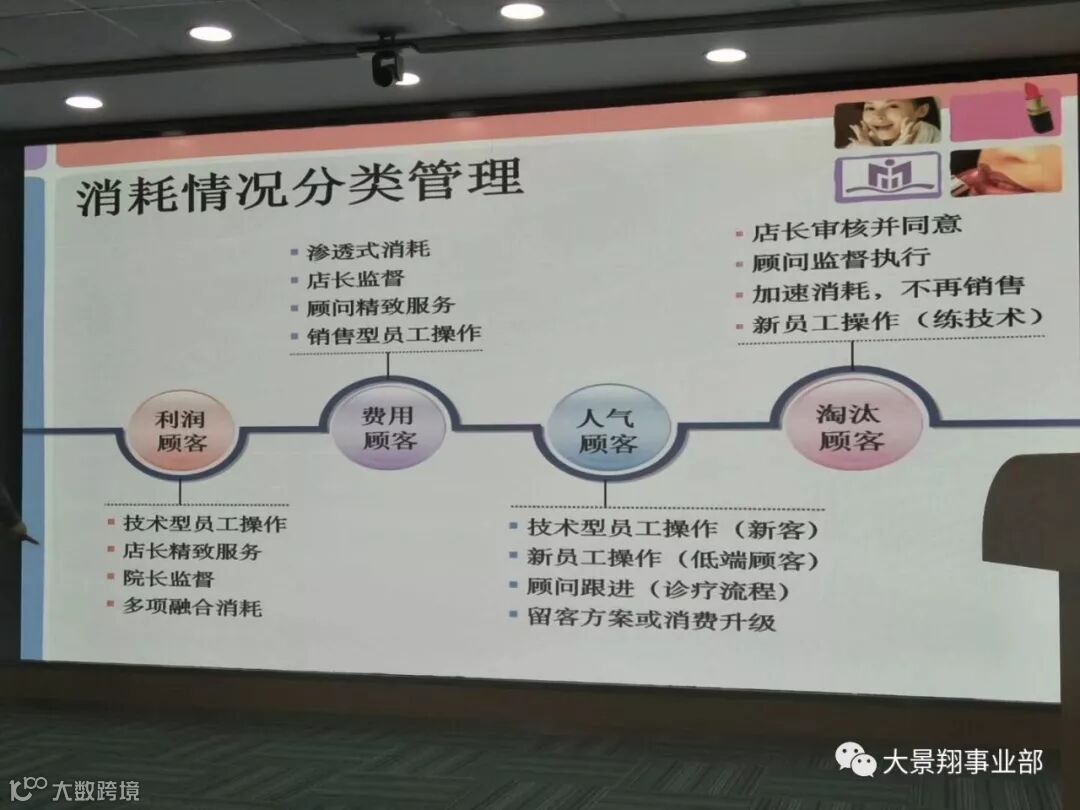 销售+消耗是美容院不变的主题,美容院其实不缺销售型人才,但消耗就差强人意。中国店务管理第一人孙太林教授开创的2022百万店销工程,是业内首个打通“销售+消耗”的店务系统,她的顾客分类管理、精细化销售管理、倍速化消耗管理、4050工程等模块,是对美容院传统店务的全新颠覆,真正帮助美容院学会掌握顾客大数据、应用顾客大数据,确保基础业绩近百万!作为景翔的首席战略顾问,为纤汇佳、沃哆美3个月开店320家,且店店盈利提供了系统化保障。景翔2019将把本套系统植入旗下更多的品牌和合作店,助力大、中、小店2019都佩奇!