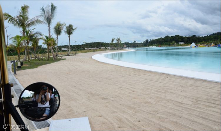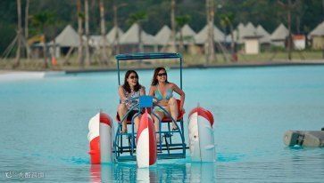 水晶湖是东南亚最大的休闲海水湖,湖水澄澈透明。就像一颗湛蓝清透的大水晶镶嵌在陆地上。