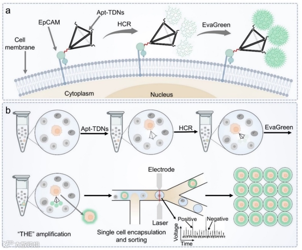 近日,上海科技大学与中科院上海微系统与信息技术研究所科研团队创新性地构建了 Tetramer-HCR-EvaGreen (THE) 荧光放大系统,该系统结合液滴高通量分选策略,显著提升了细胞分选的效率,并降低细胞损伤。该成果发表在知名刊物《Microsystems & Nanoengineering》上。