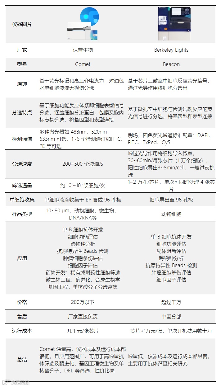 达普生物 Comet 单细胞高通量筛选平台分选通量高、速度快、成本低,对细胞无损伤,有望对现有的单 B 细胞筛选技术产生降维打击。