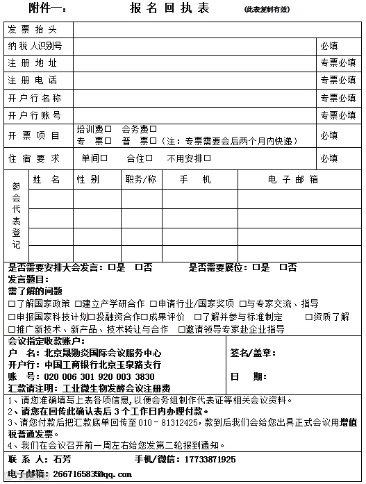 为做好会务工作,请参加研讨会的人员填写《回执表》(见附件一),并以电子邮件或传真方式反馈至组委会。