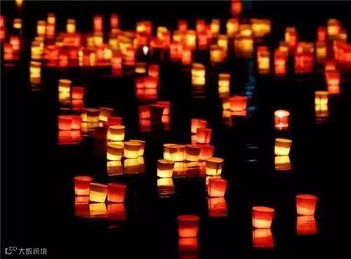 河灯也叫“荷花灯”,河灯一般是在底座上放灯盏或蜡烛,中元夜放在江河湖海之中,任其漂泛。放河灯的目的,是普渡与祈祷。放河灯,尤数黄河里放灯壮观。