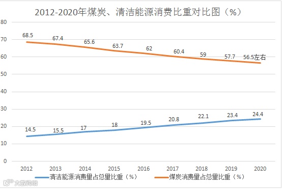 根据近期国家权威部门发布的有关数据,2020年我国能源消费结构继续优化,煤炭消费比重进一步降至57%以内,天然气、水核风光电等清洁能源的消费量占能源消费总量的比重已提高到24.4%。一增一减之间,碳减排效应显著。