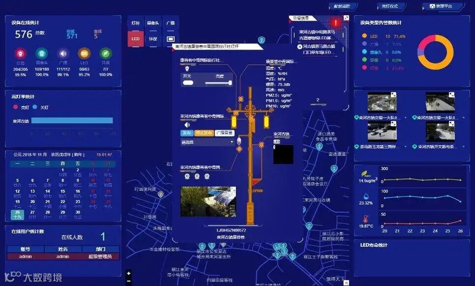 方案将城市照明路灯统一接入物联网络,基于GIS进行可视化管理,管理者可以清楚的了解每一个街区、每一盏路灯的状态信息;通过应用灵活的照明策略,可以对每一盏路灯的开关状态、照明亮度进行精准控制,真正实现按需照明,节能效率高达80%。