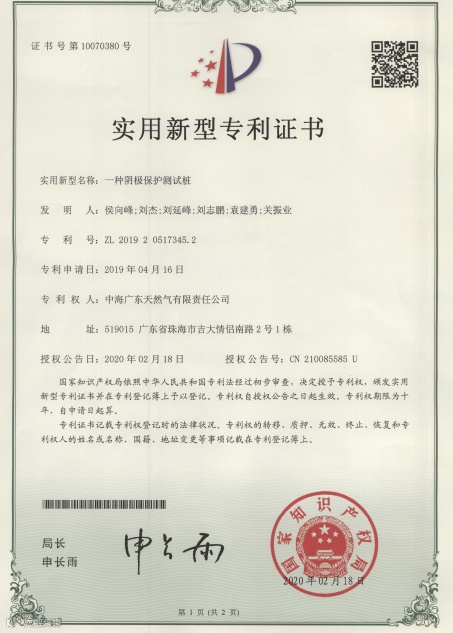自主研发获专利。2022年自主研发阴极保护测试桩技术,获批实用新型专利,解决管道腐蚀监测难题。