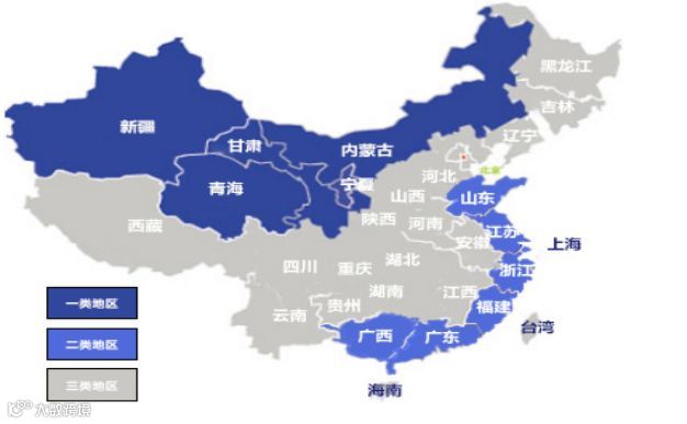 沿海地区:主要包括辽宁、山东、江苏、上海、浙江、福建、广东、广西和海南等,其中浙江及福建地区平均风速达9M/S。