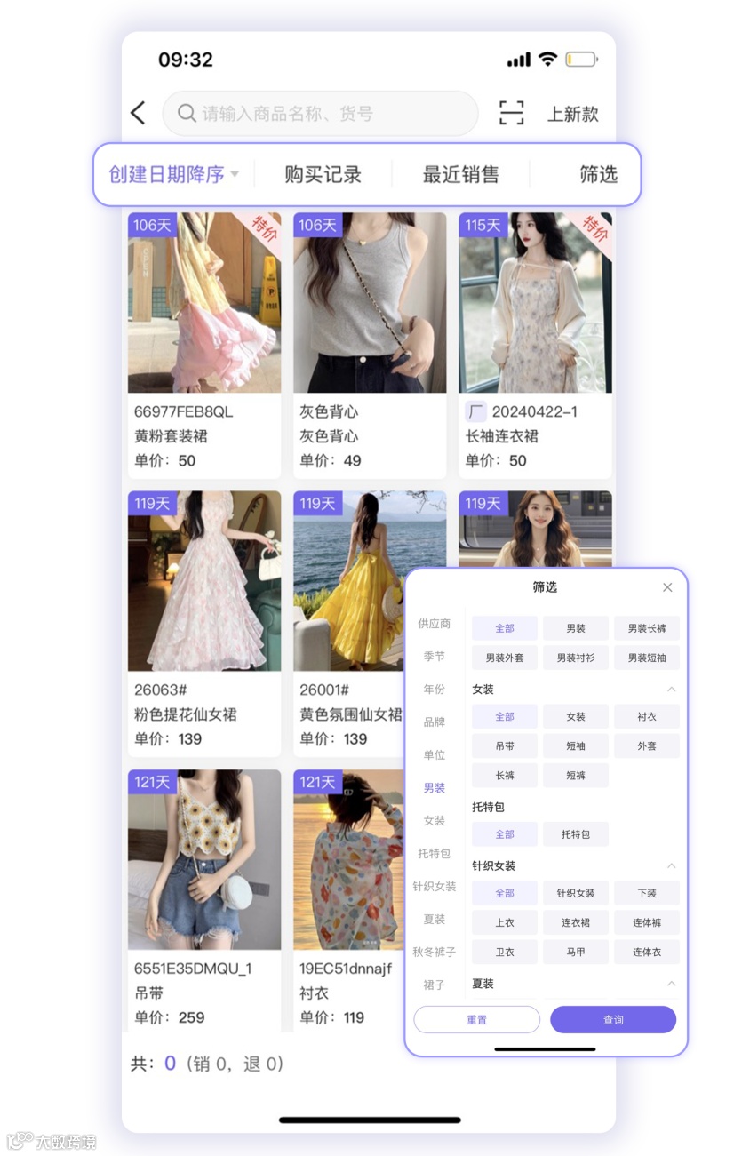 根据名称、货号、销量等条件快速筛选商品,灵活选款开单,让您在繁忙中游刃有余。