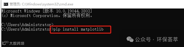 接着在新弹出的对话框中输入“pip install matplotlib”,意思是:安装matplotlib。或者输入“pip install windrose”回车后,就会自动安装了。(安装过程可能会比较长,如果科学上网会非常快)