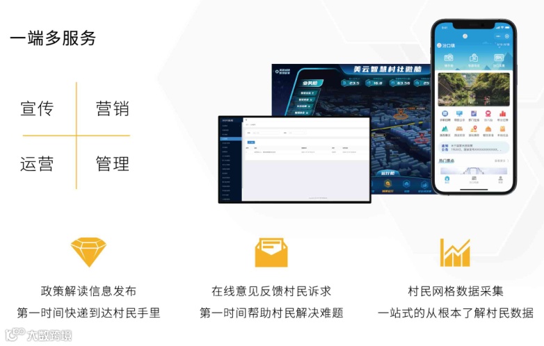 多彩镇村以“乡村治理,便民服务及旅游营销”为抓手,通过5G网络、AI分析、大数据等技术手段,实现精细化网格管理,高水平推进乡村振兴,高品质优化乡村发展格局、高标准创造群众美好生活。