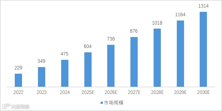 虚拟电厂的市场规模持续增长。2022-2030E 规模从 229 亿元升至 1314 亿元,复合年增长率(CAGR)达 24.4%,属于电力新赛道中的高增长领域;年度增量逐步扩大(2022-2023 增 120 亿,2028-2029 增146 亿),说明行业需求释放节奏在加快。