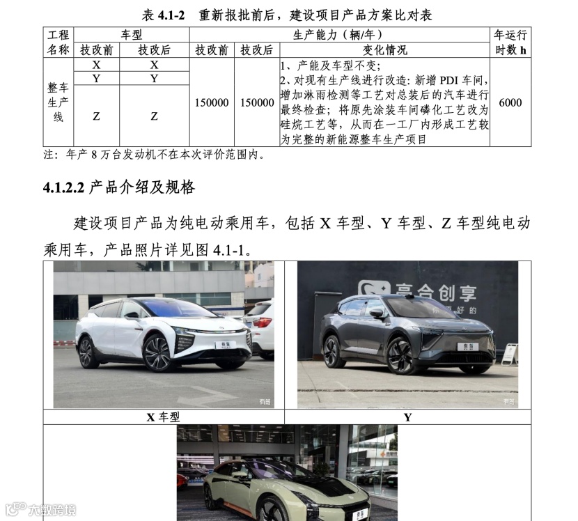 事实上,盐城经济技术开发区官网也公布了相关信息。一份环评报告显示,悦达起亚一工厂智能化绿色技术升级改造,拟投资为1796.07万元,预计2025年10月完成。报告中涉及的产品车型与高合一致。改造中原15万辆/年的产能和车型均不发生变化,其中高合汽车旗下的X车型(3.75万辆/年)、Y车型(3.75万辆/年)、Z车型(7.5万辆/年)。