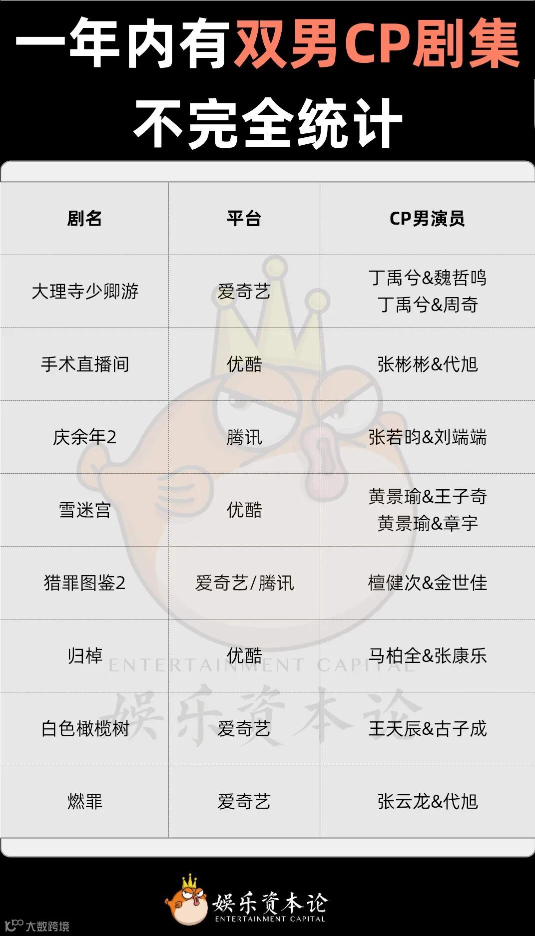 一年内有双男CP剧集不完全统计