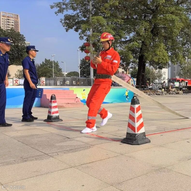 通过前期扎实的基本功训练,参赛队员面对全新环境迅速作出反应,完成穿戴服装、铺设水带、扑灭险情等操作,脱颖而出取得好成绩。